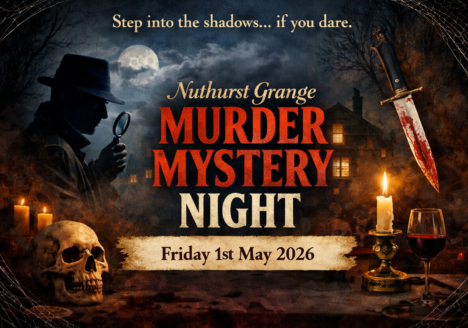 Step into the shadows… if you dare. Join us at Nuthurst Grange for a thrilling Murder Mystery Night like no other. Has someone taken their role too seriously? Is it all just…