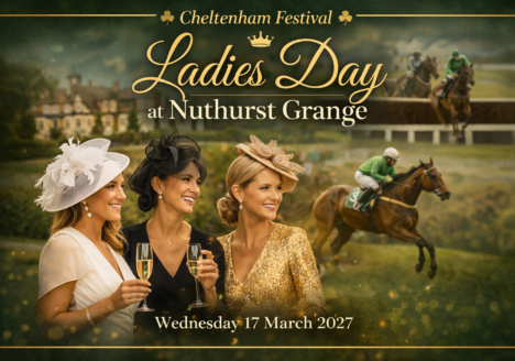 Experience the Thrill of Ladies Cheltenham Day at Nuthurst Grange! Join us on Friday, Wednesday 17th March 2027, for an unforgettable day at our countryside retreat as we celebrate the Cheltenham in…