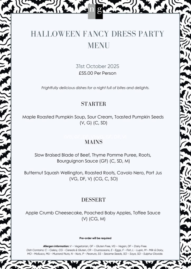 - 3-Course Meal: Indulge in a delectable three-course dinner that will be confirmed closer to the event. Prepare for a feast that will satisfy even the most ghoulish appetites!