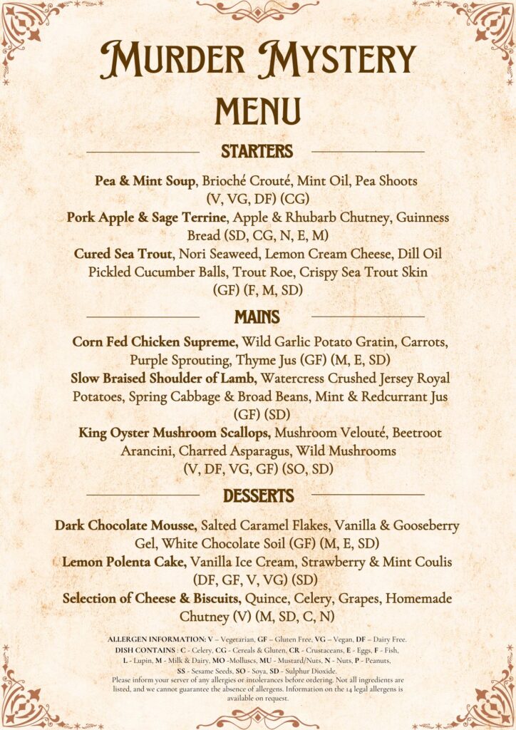 Join us at Nuthurst Grange for a thrilling Murder Mystery Night like no other.
