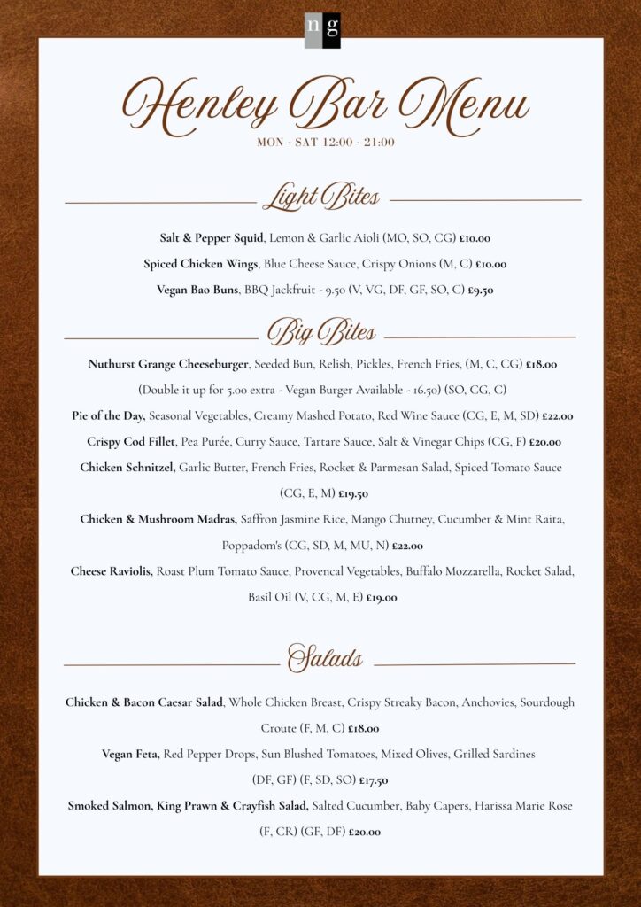 Henley Bar Dining and Our Sandwich Menu at The Nuthurst Grange